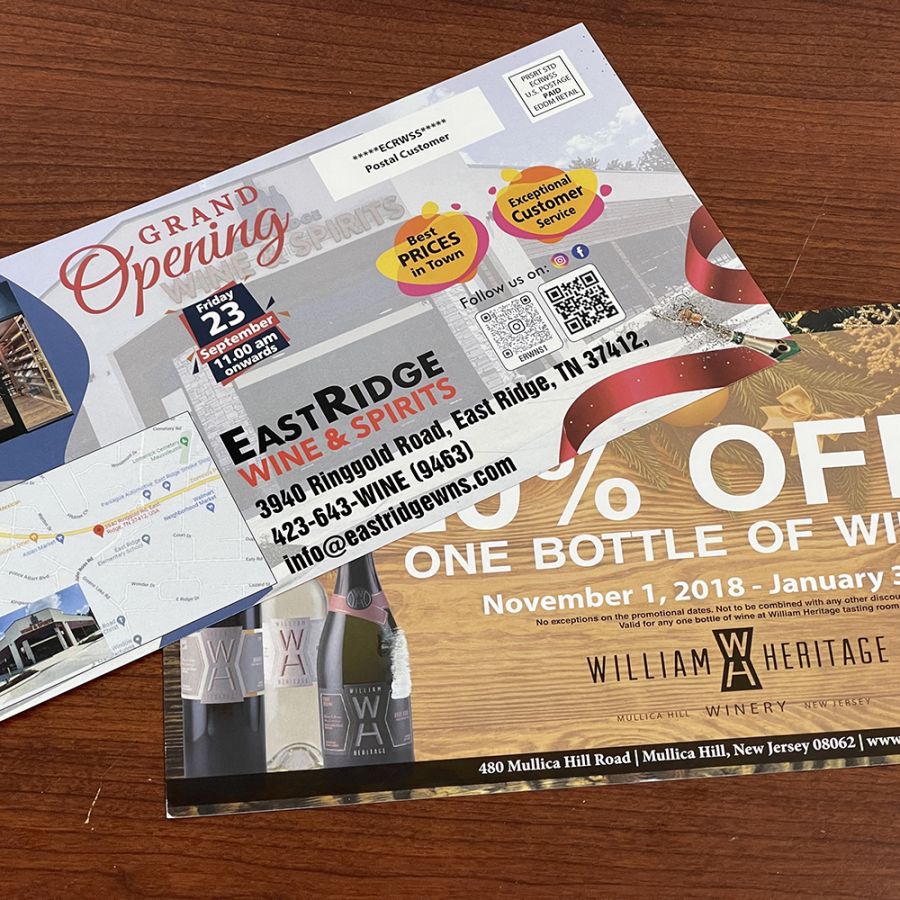 Postcards can be printed 1 or 2-sided and are often mailed. They come in a wide variety of sizes and on a broad range of heavier substrates. Different coating choices and optional rounded corners add to your unique design.